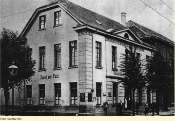 1848 richtete der Schenkwirt Peter H. Dickmann die erste Poststelle in Fischeln ein. Er starb 1878. Theodor Schmitten erwarb das Gebäude am 25. Juli 1899 von dem Fruchthändler Jakob Schmitz. Er war ein engagierter Mitbürger und bis zur Eingemeindung im Jahre 1929 nach Krefeld als Gemeinderatsmitglied tätig. 1902 wurde er Schützenkönig der Bürger-Schützen-Gesellschaft 1451 Fischeln. Die Familie Schmitten betrieb die Gaststätte und das „Hotel zur Post“ fast 100 Jahre lang. 1995 wurde das Gebäude von der Firma Hambloch erworben und revitalisiert.