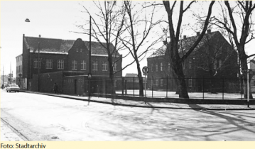 Die Südschule ist aus der „Schule im Dorf“, der Marienschule (siehe Nr. 19), hervorgegangen. Mit dem Bau von zwei Klassenräumen wurde im Frühjahr 1877 begonnen, die am 8. Mai 1878 ihrer Bestimmung übergeben wurden. Die Schulverhältnisse waren weiterhin nicht ideal, die Schule musste deshalb nochmals um zwei Räume erweitert werden. Im Jahre 1884 wurde die Südschule mit vier Schulklassen selbstständig, insgesamt wurden damals 285 Kinder unterrichtet. Im Oktober 1888 wurde der nächste Schulerweiterungsbau fertig gestellt. Heute lautet die offizielle Bezeichnung: Südschule, Städt. Gemeinschaftsgrundschule. 2008 wurden in einem Erweiterungsbau eine Mensa und ein Verwaltungsbereich eingerichtet. In dem Neubau befinden sich auch Gruppenräume für den offenen Ganztag. Ein weiterer Bauabschnitt umfasst die Erweiterung des direkt an der Kölner Straße gelegenen Altbaus um sechs Unterrichtsräume mit Nebenräumen. Für diese Erweiterung musste das Gebäude, in dem sich früher die bekannte Gaststätte „Zum Südpol“ befand, weichen. Rund 275 Schülerinnen und Schüler werden heute (Schuljahr 2010/11) an der Südschule unterrichtet. Wichtige Merkmale des Unterrichts sind das jahrgangsübergreifende Lernen und das gemeinsame Lernen behinderter und nicht behinderter Kinder.