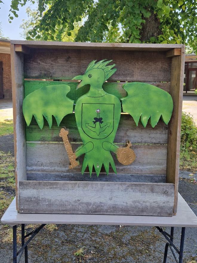 So hat der neue König während des großen sonntäglichen Umzuges einen Kutschenplatz sicher. Einmal hoch neben dem Kutscher durch die Straßen Fischeln zu fahren und allen Leuten zuwinken. Nun ging es los. Mit gut gezielten Würfen der Tennisbälle wurde der gebaute Vogel bearbeitet. Hier stellten sich sehr schnell Jungs mit Ambitionen die Königswürde zu erringen heraus. Zuerst wurde Zepter, Reichsapfel und folgend die beiden Flügel abgeworfen. Nun ging es auf den eigentlichen Rumpf des Vogels, um diese von der Stange zu holen. Zuerst widersetzte sich das Federvieh noch vehement den kraftvollen Würfen, musste jedoch sich dann nach über einer Stunde geschlagen geben. Der Rumpf platze auseinander und fiel zu Boden. Diesen entscheidenden letzten Treffer konnten Till Maass setzen und ist somit Träger der Königskette. Die Kette wurde nun neu ins Leben gerufen und konnte durch eine Spende angeschafft werden. Auf den einzelnen Medaillen sind die bisherigen Könige mit den Jahreszahlen verewigt. Nun kommt Till mit dazu. Der Nachmittag wurde durch gute Stimmung, vielerlei Spiele aber auch Planungen keinesfalls langweilig. Auch zeigte sich hier die Kameradschaft untereinander. Neudazugekommene werden schnell aufgenommen sind dabei. Die Jungs sind mit einer derartigen Vorfreude auf das kommende Schützenfest dabei das man sich manchmal ein wenig Bremsen muss. Für die jungen Schützen sind Fragen wie: „Was muss besorgt werden - wo treffen wir uns – wie sind die Zugwege – was ziehen wir an - wann laufen wir und geht es los.“ Daran kann man schon genau erkennen mit welchem Spaß hier die jungen Schützen dabei sind. Freuen wir uns also auf das kommende Schützenfest.