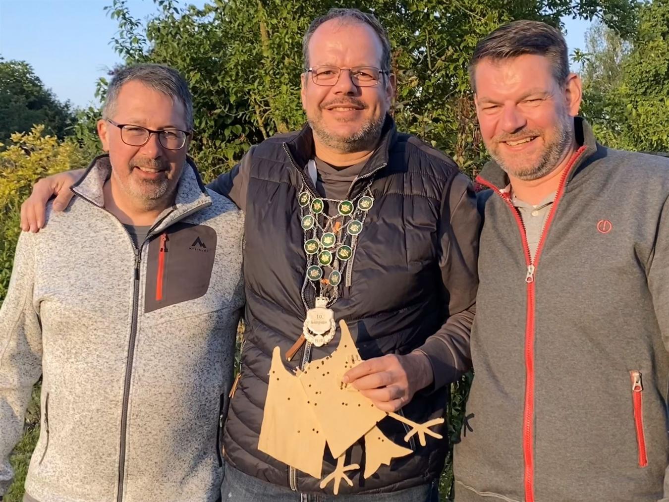 Der neue Kompaniekönig Markus Deuß mit seinen Ministern Michael Frenken (li.) und Michael Deuß (re.)