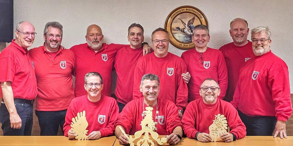 Siggi Ackermann ist neuer König der 1. Artillerie Fischeln. Zum Jubiläumsvogelschießen, am 09.11.2024, schoss Siggi (Foto, Mitte vorne) nach einem langen Wettkampf mit dem insgesamt 308. Schuss den Vogel ab.